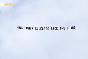提前5轮降级!莱斯特城球迷飞机拉横幅抗议:解雇董事会